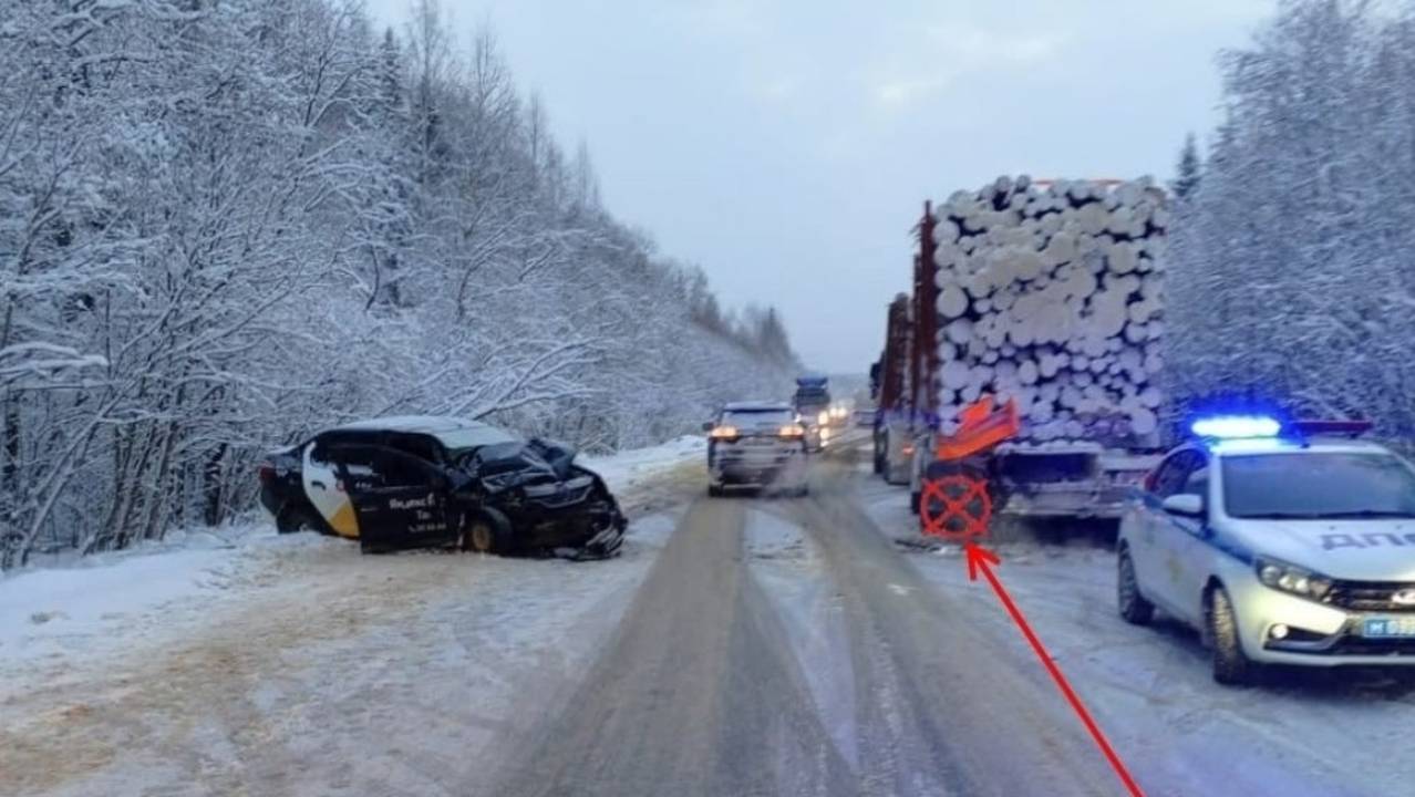 Главная картинка новости: В Коми после поездки на такси пассажирка оказалась в больнице: машина врезалась в лесовоз